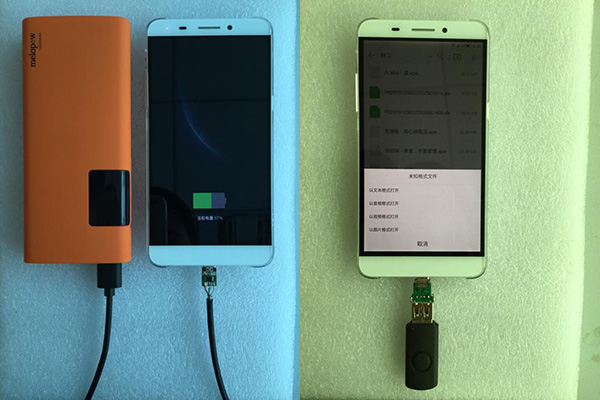 第3项测试,数据传输测试。第一步,把乐1接上windows电脑,可以顺利的认到一个U盘,与普通的安卓手机没有区别。这表明他可以作为一个USB2.0 Device。 第二步,用一个C口转A母座转接器,把一个U盘接到乐1,可以顺利的读到U盘,并且播放里面的音视频文件,表明乐1可以作为一个USB 2.0 HOST。