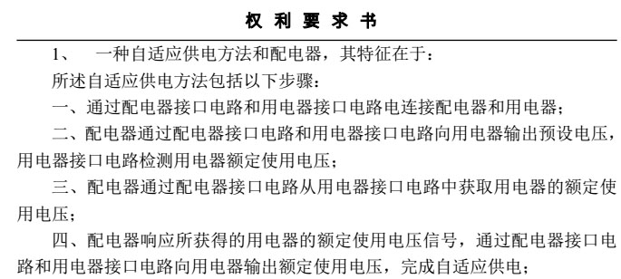 综合以上,已经基本上说明了,PD会是QC的终结者,快速充电标准的最终决战,一定会在PD的战场上打响。而MTK则最先攻占山头,率先推出了基于PD的快速充电标准,试图挽回在第一回合的竞争中,被高通QC所压制的颓势。大陆这边,华为已经在磨刀霍霍。即将推出自己的基于USB PD的快速充电标准。就在新的大战即将拉开序幕之时,却又另外一个震撼人心的消息,QC等大多数快速充电技术,都已经被国内一家公司在2012年申请的一篇专利所公开和覆盖了,而这份专利,已经在本月获得授权。让我们来看看这份专利的技术含量:
