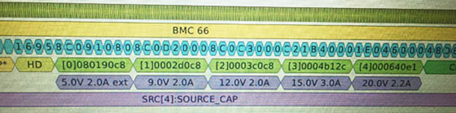 第三,PDO的发送方式不同,小米的适配器,不是一上来就发5档PDO,而是先发一个5V/2.0A的PDO,让对方先工作起来,然后通过VDM去识别对方的设备。并提供相匹配的输出电源选项。例如,碰上苹果的Macbook,它会放出15V/2A的PDO,似乎是一个暖男,提供贴心服务。当然,如果对方不领情,不告知PID,或者是提供的PID它并不认识,它还是会乖乖的放出5档PDO来的。严格来讲,这种做法不是USB PD标准所推荐的,因为USB PD标准文档里面,特别举了例子来应对这种情况,核心思想应该是使用get_sink_cap去获取对方的真实需求,而不是通过pid或者vid去识别。另外,这个特性对于DOCKING这类产品来说,也是个坑,因为需要在收到适配的PDO后,及时更新向PC端宣称的PDO,但是,DOCKING产品不一定会这么设计,比如苹果的原装TYPE-C DOCKING和华为原装DOCKING就掉坑了,小米适配器接上苹果的官方DOCKING或者华为官方DOCKING,是无法给MIBOOK充电的。而LDR6023的DOCKING方案则已经完美解决了这个问题。可以完美的与MIBOOK以及MI适配器配合工作,进行充电及输出HDMI,进行U盘数据传输等。