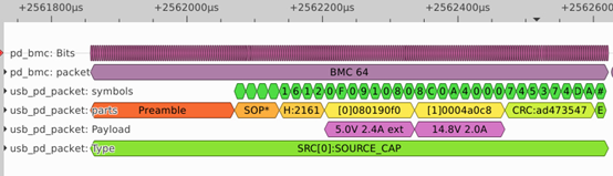 (图1 Macbook 原装适配器的PD通信波形)