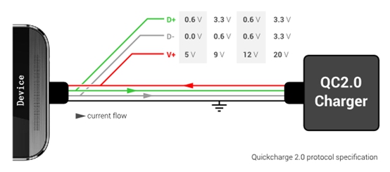 QC2.0 关注的是一个充电设备和一个被充电设备