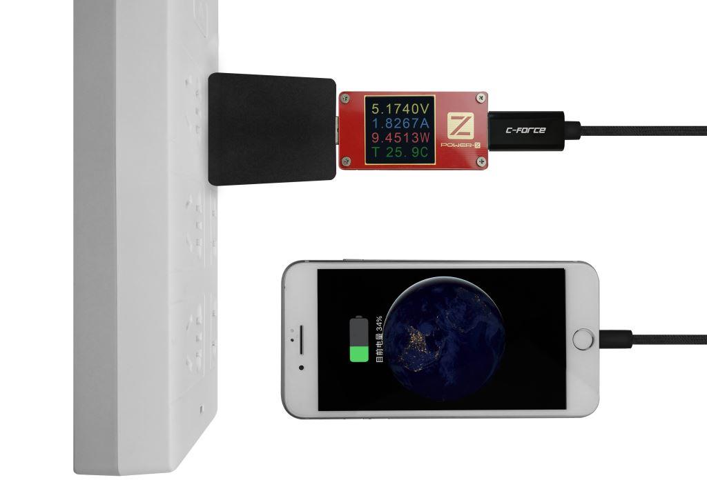 除了QC快充,对于普通的5V2A充电器,这条转接线也表现不俗。我们知道,在不进行iphone充电电阻配置的情况下,普通A口充电器只能够实现5V 1A给Iphonex充电。但是用上这条转接线后,可以轻松的上到5V 1.8A。根据说明书介绍,这款快充线具有功率自适应的功能,对于那些实际功率达不到要求的充电头,一旦输出电压被拉低到空载值的90%,则会重新与iphone协商充电电流,直至充电电流与充电头的实际输出能力相匹配。从而达到保护适配器和手机的目的。