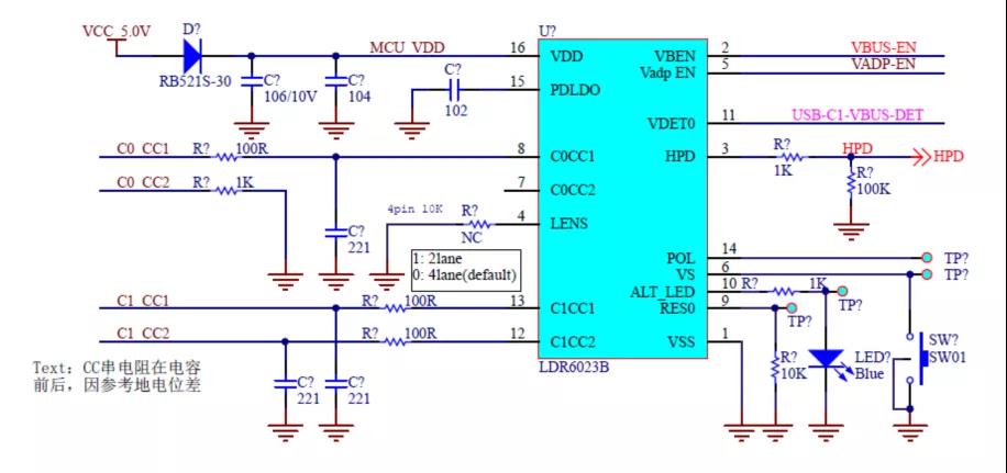 图4 任天堂转接底座PD通信协议控制芯片LDR6023B参考应用电路